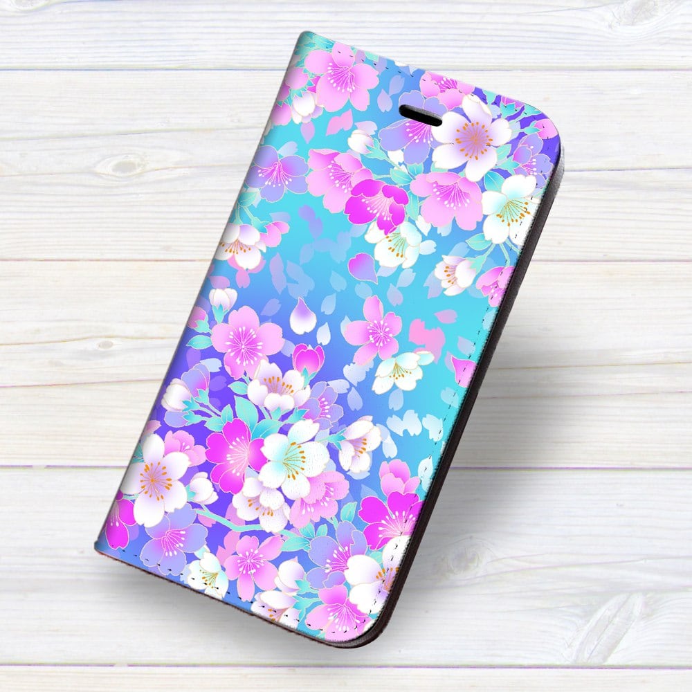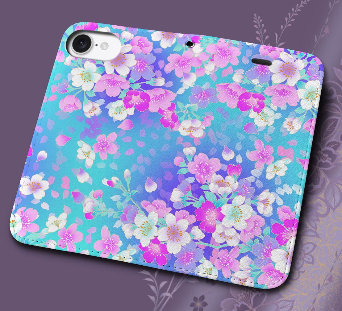 iPhone対応 スマホ 手帳型ケース 水面桜流し 和柄 【iPhone17 / iPhone16 / iPhone16e / iPhoneSE 他 iPhone各機種対応】 st44