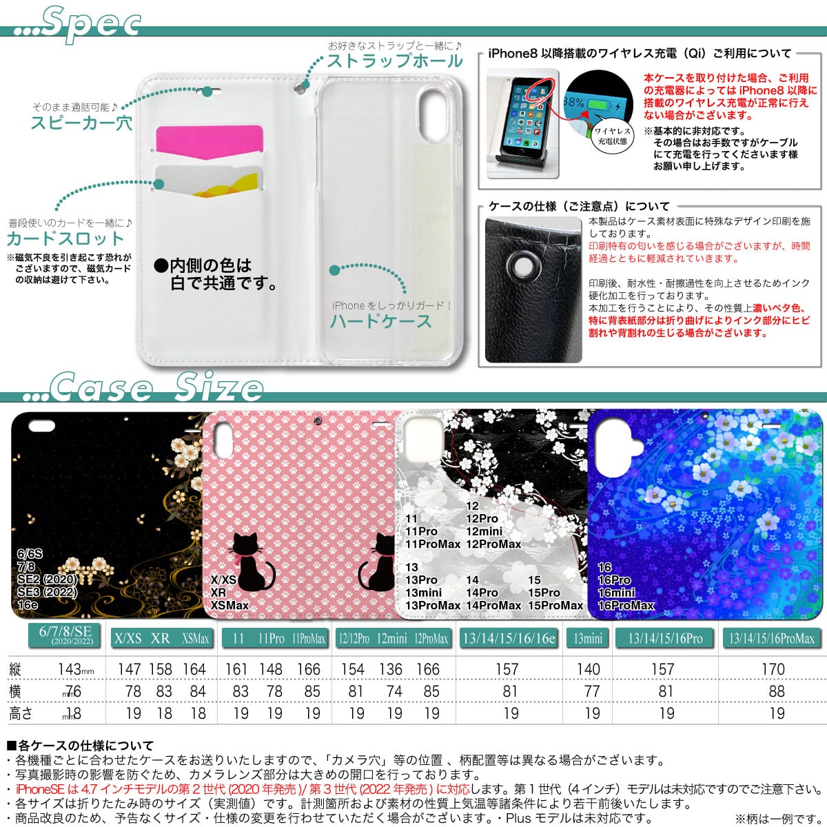 現在御覧頂いている柄を含め、様々な柄を取り揃えております!また、iPhone8以降の各機種に対応しております。