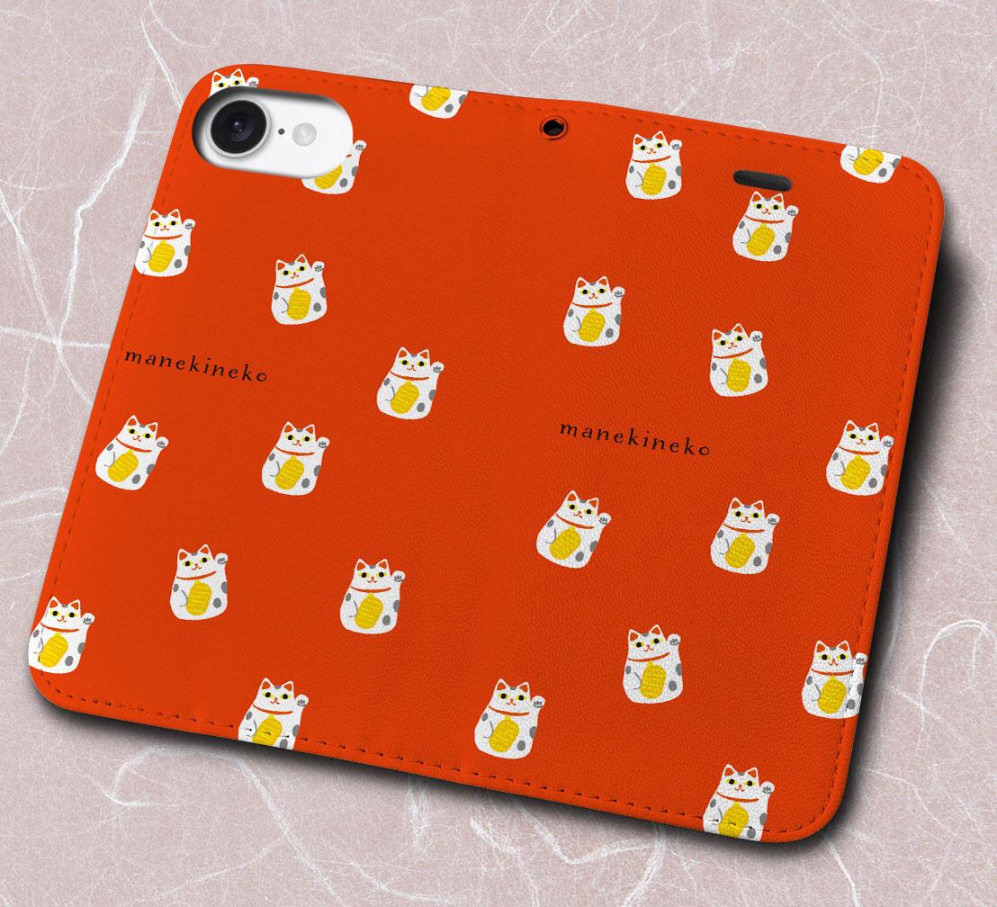 iPhone対応 スマホ 手帳型ケース 招き猫 いっぱい 日本 伝統 【iPhone17 / iPhone16 / iPhone16e / iPhoneSE 他 iPhone各機種対応】 st39