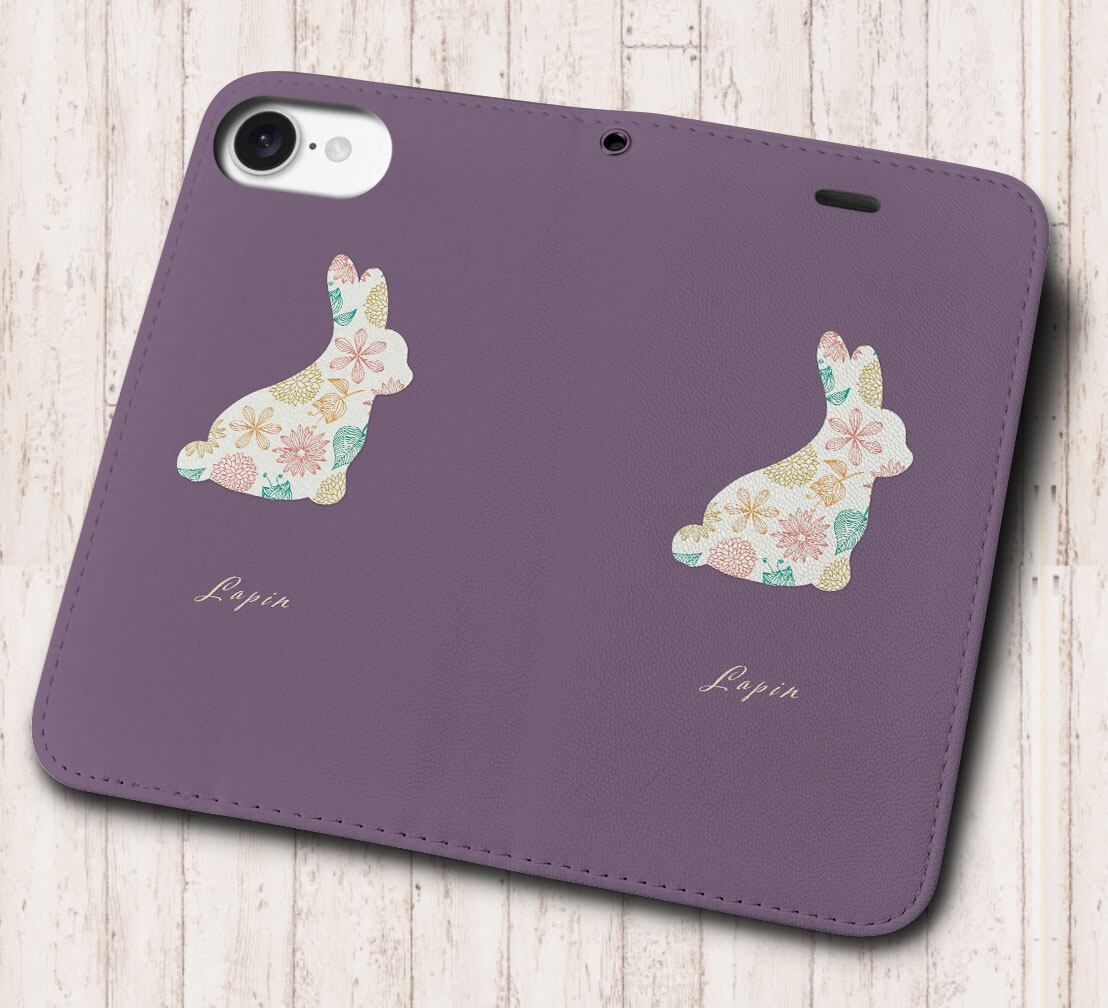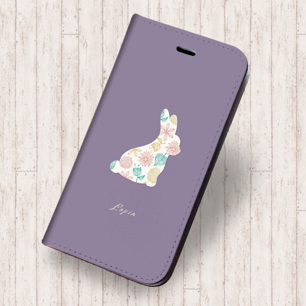 iPhone対応 スマホ 手帳型ケース フラワーうさぎ パープル 動物 キュート 【iPhone17 / iPhone16 / iPhone16e / iPhoneSE 他 iPhone各機種対応】 st39
