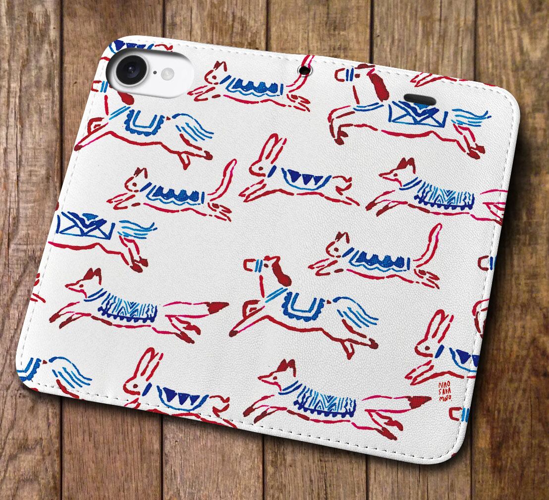 iPhone対応 スマホ 手帳型ケース かけっこ レッド キュート イラスト 【iPhone17 / iPhone16 / iPhone16e / iPhoneSE 他 iPhone各機種対応】 st56