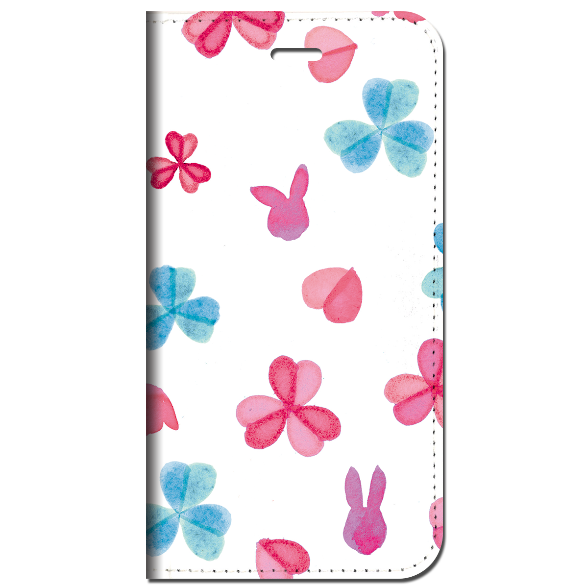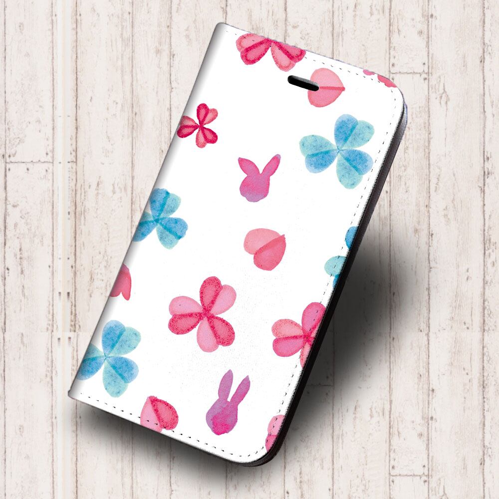 iPhone対応 スマホ 手帳型ケース うさぎと春のお花 三つ葉 キュート イラスト 【iPhone17 / iPhone16 / iPhone16e / iPhoneSE 他 iPhone各機種対応】 st56