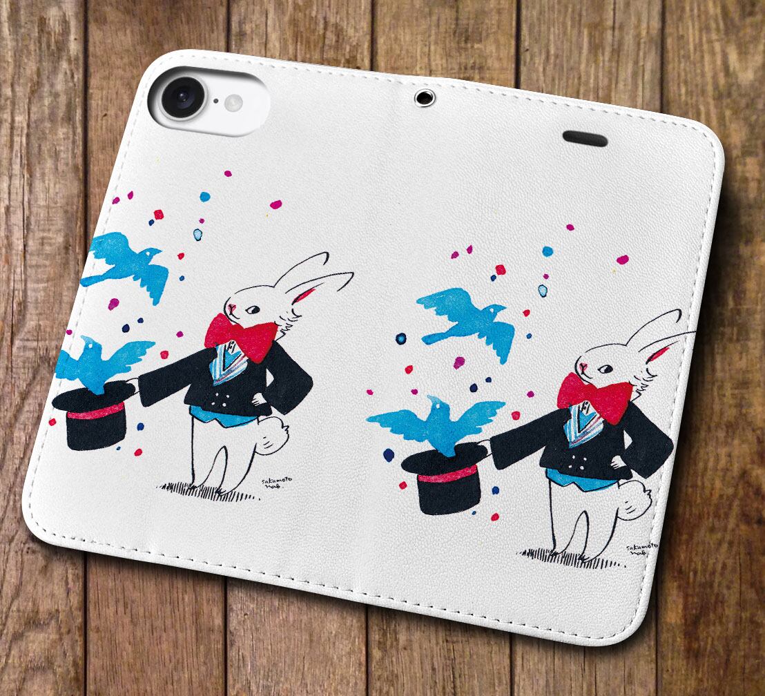 iPhone対応 スマホ 手帳型ケース うさぎの手品師 キュート イラスト 【iPhone17 / iPhone16 / iPhone16e / iPhoneSE 他 iPhone各機種対応】 st56