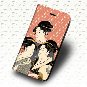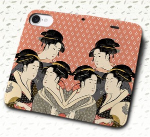 iPhone対応 スマホ 手帳型ケース 三美人-赤香色 日本 伝統 和柄 江戸 浮世絵 【iPhone17 / iPhone16 / iPhone16e / iPhoneSE 他 iPhone各機種対応】 st45