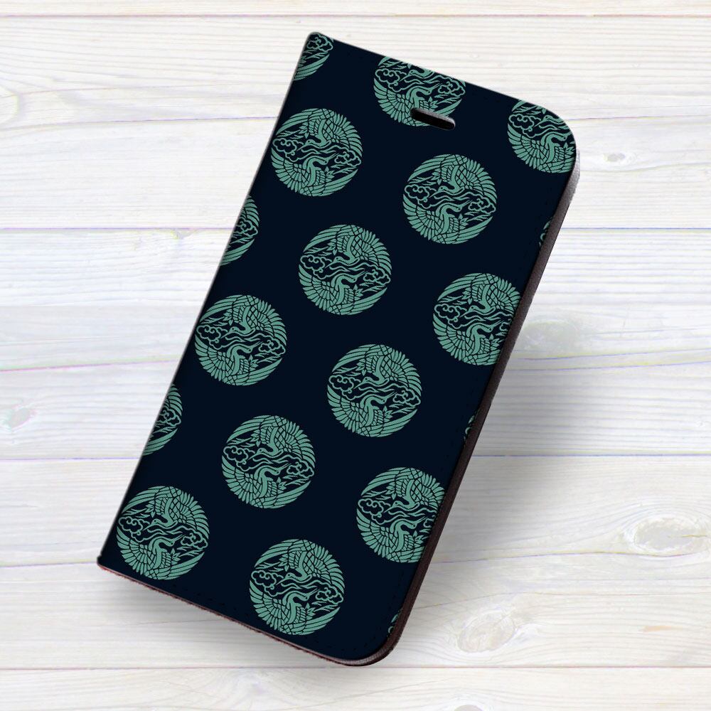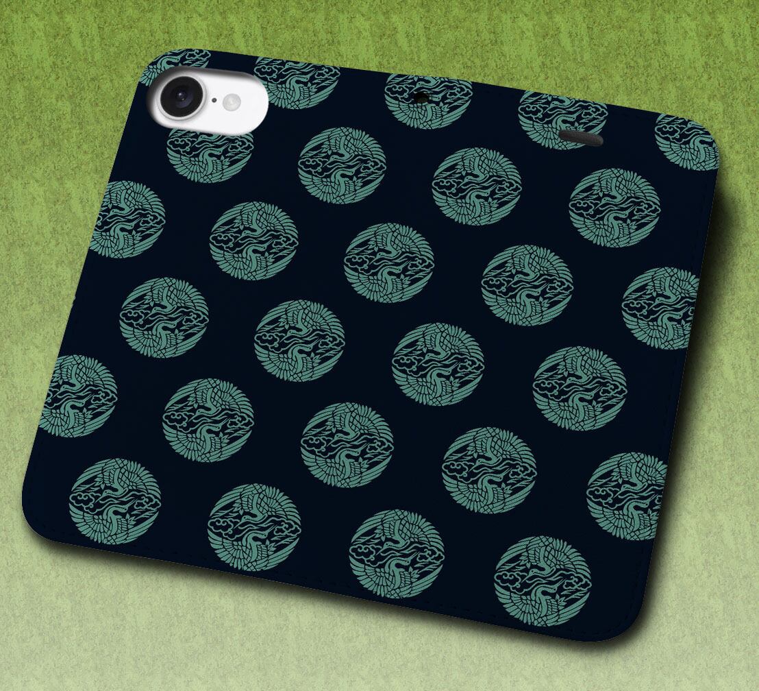 iPhone対応 スマホ 手帳型ケース 江戸小紋-雲鶴の丸 日本 伝統 和柄 江戸 浮世絵 【iPhone17 / iPhone16 / iPhone16e / iPhoneSE 他 iPhone各機種対応】 st45
