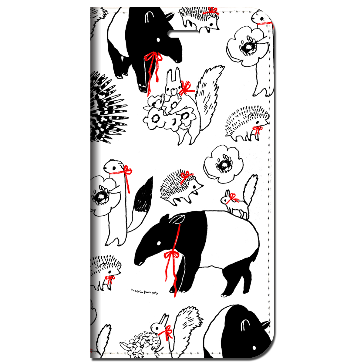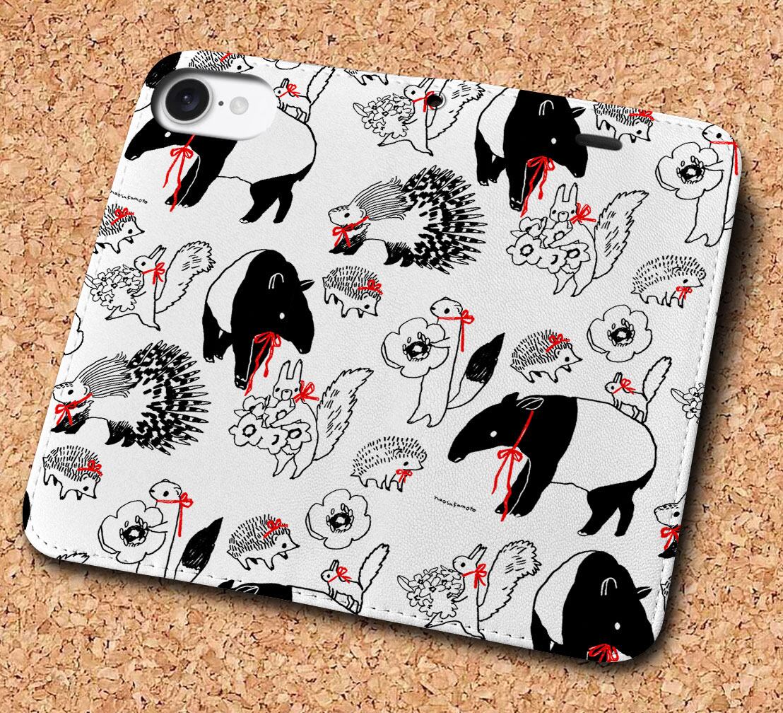 iPhone対応 スマホ 手帳型ケース マレーバク・ハリネズミ・フェレット ポップ イラスト 【iPhone17 / iPhone16 / iPhone16e / iPhoneSE 他 iPhone各機種対応】 st41