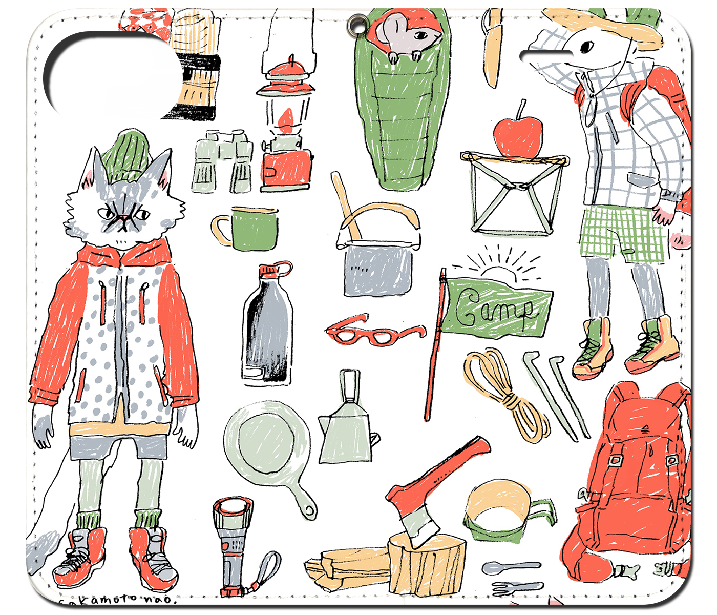 iPhone対応 スマホ 手帳型ケース 準備OKキャンプ ポップ イラスト 【iPhone17 / iPhone16 / iPhone16e / iPhoneSE 他 iPhone各機種対応】 st42