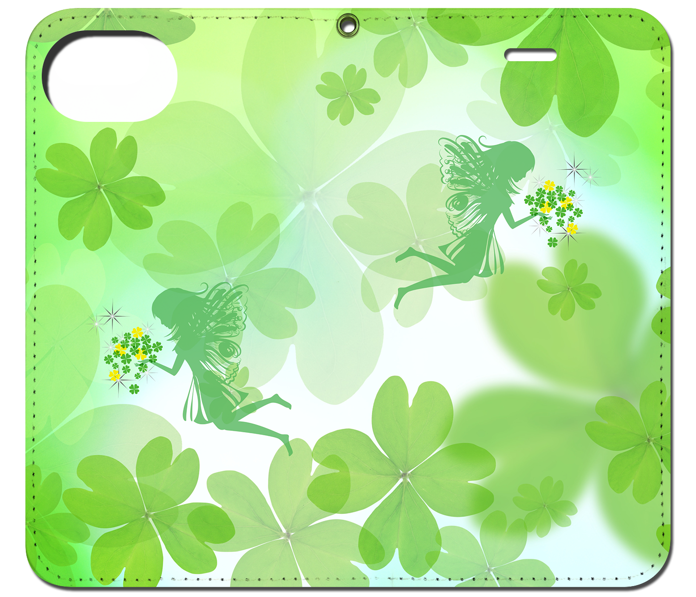 iPhone対応 スマホ 手帳型ケース 妖精と四つ葉のクローバー ポップ イラスト 【iPhone17 / iPhone16 / iPhone16e / iPhoneSE 他 iPhone各機種対応】 st46