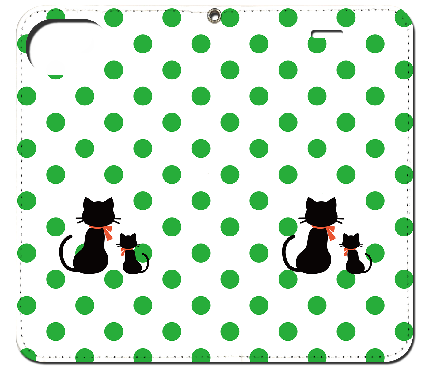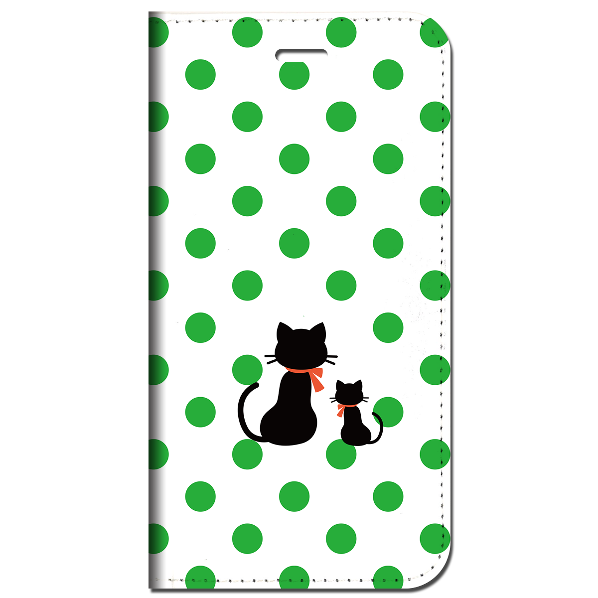 iPhone対応 スマホ 手帳型ケース 親子猫ドット-グリーン ポップ イラストネコ 【iPhone17 / iPhone16 / iPhone16e / iPhoneSE 他 iPhone各機種対応】 st47