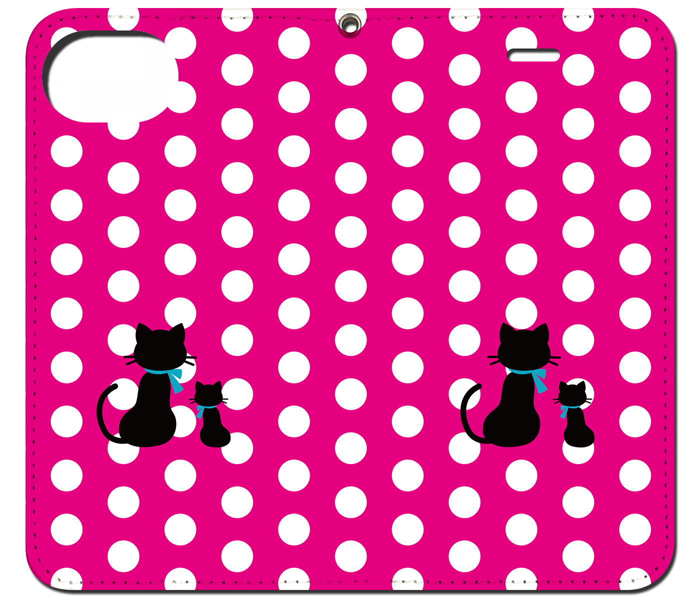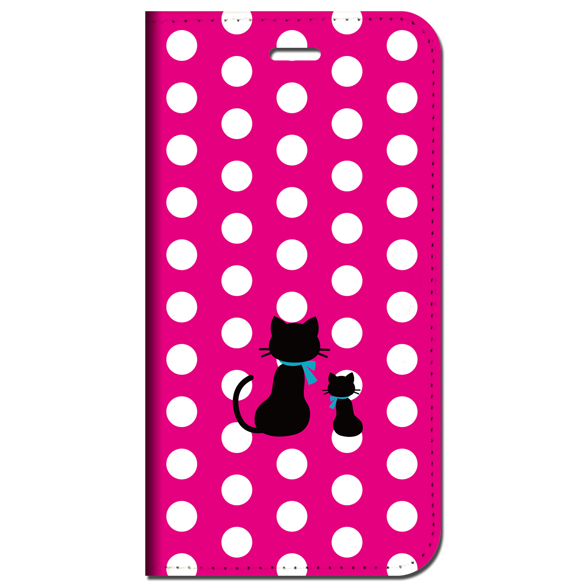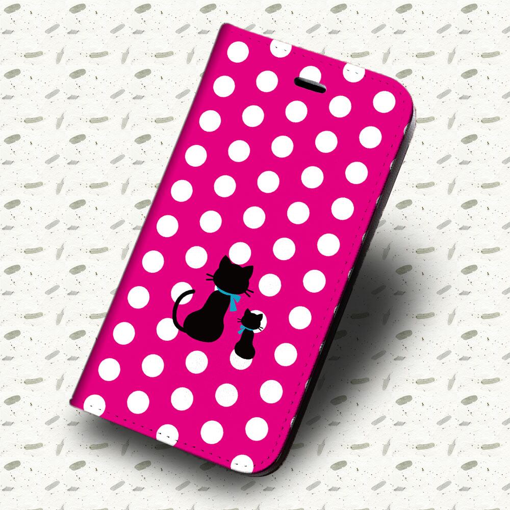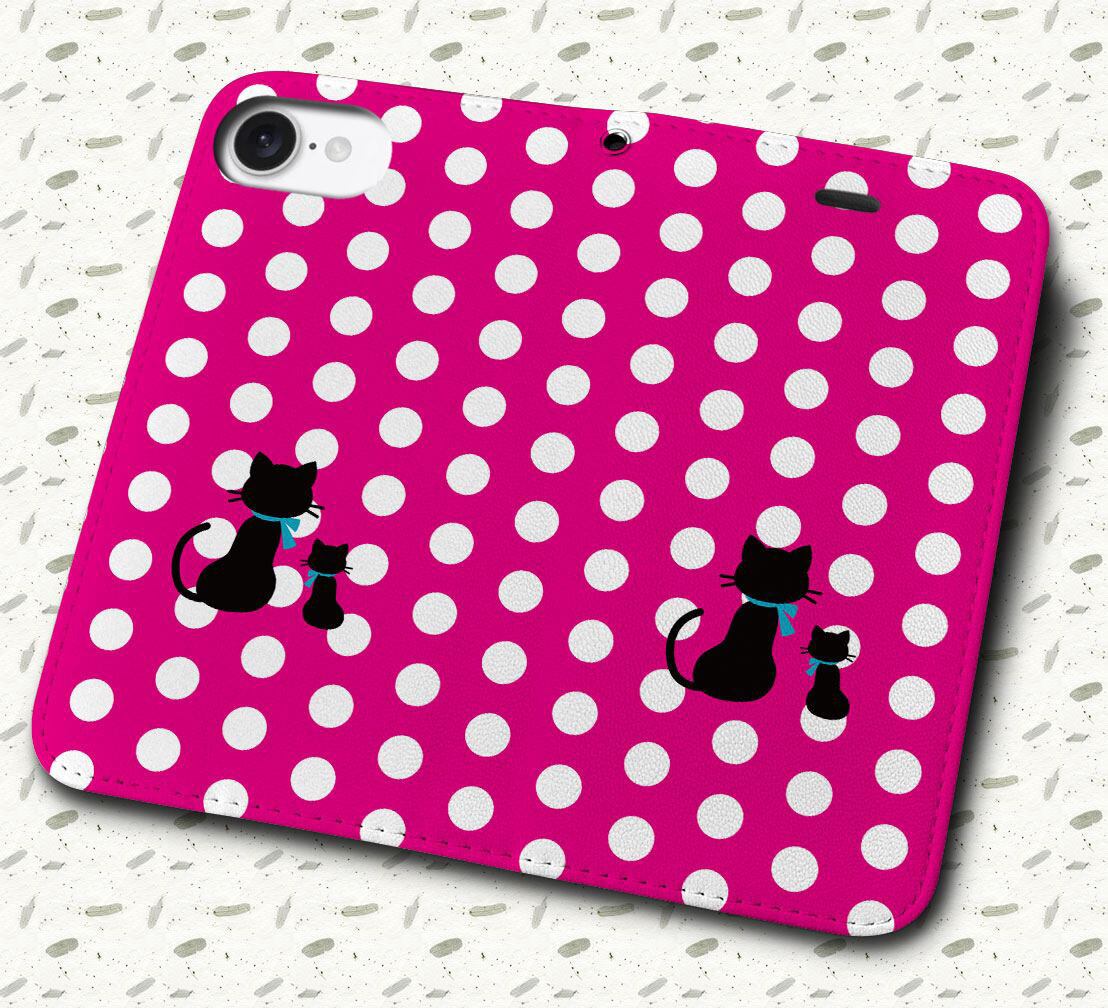 iPhone対応 スマホ 手帳型ケース 親子猫白ドット-ピンク ポップ イラストネコ 【iPhone17 / iPhone16 / iPhone16e / iPhoneSE 他 iPhone各機種対応】 st47