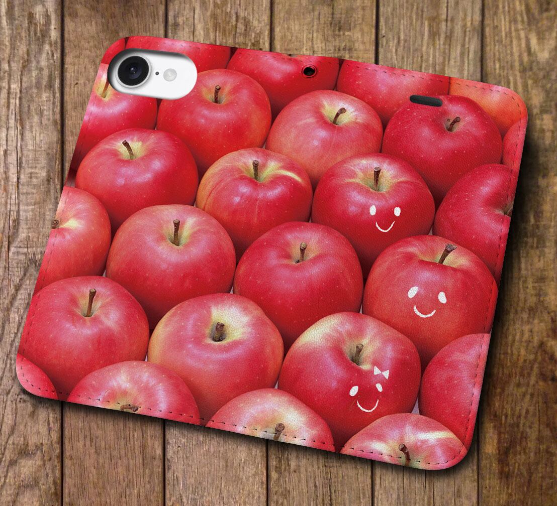 iPhone対応 スマホ 手帳型ケース スマイル リンゴ ポップ フルーツ デザート 【iPhone17 / iPhone16 / iPhone16e / iPhoneSE 他 iPhone各機種対応】 st48