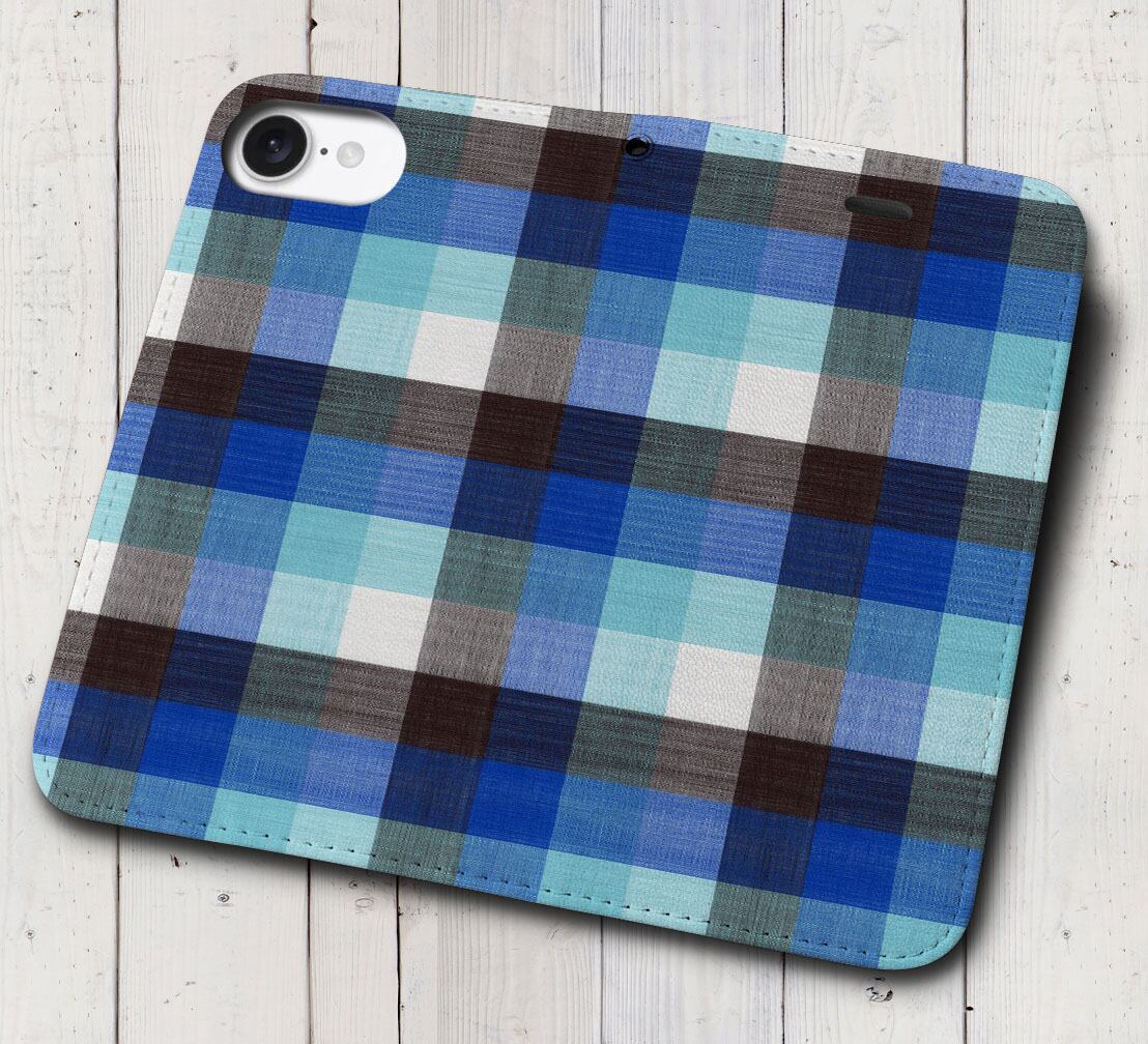 iPhone対応 スマホ 手帳型ケース トーンチェック-マリーンカラー イラスト チェック ボーダー 格子 ライン 【iPhone17 / iPhone16 / iPhone16e / iPhoneSE 他 iPhone各機種対応】 st55