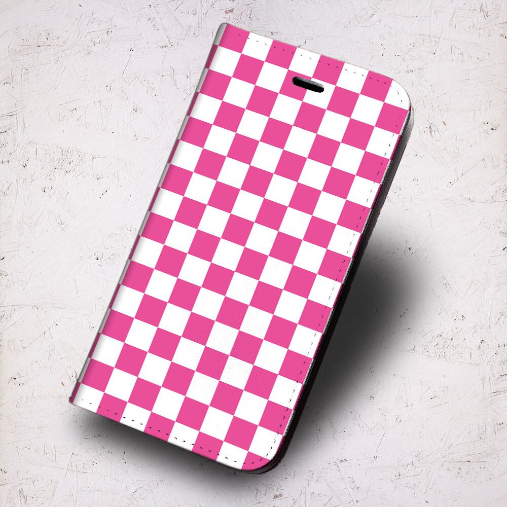 iPhone対応 スマホ 手帳型ケース ランダムチェック(白)ピンク イラスト チェック ボーダー 格子 ライン 【iPhone17 / iPhone16 / iPhone16e / iPhoneSE 他 iPhone各機種対応】 st55