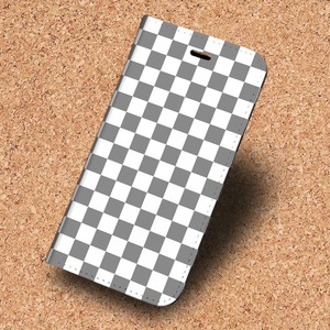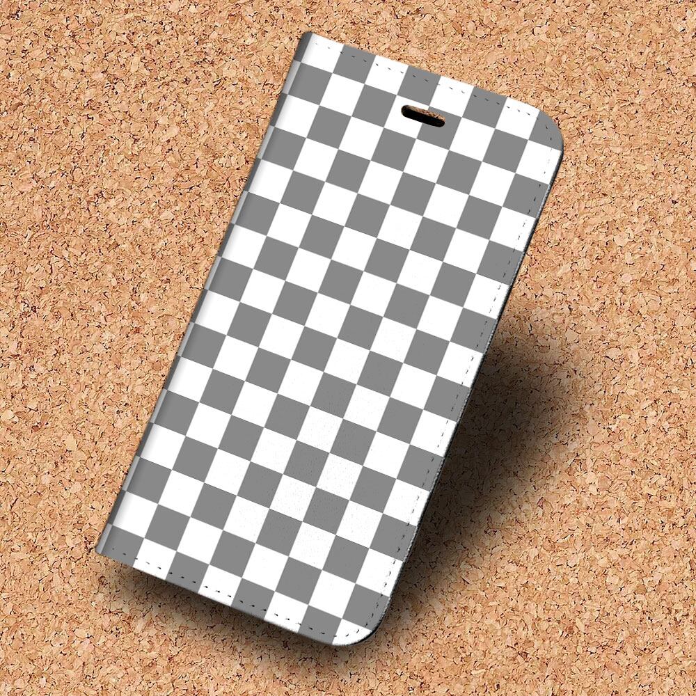 iPhone対応 スマホ 手帳型ケース ランダムチェック(白)グレー イラスト チェック ボーダー 格子 ライン 【iPhone17 / iPhone16 / iPhone16e / iPhoneSE 他 iPhone各機種対応】 st55
