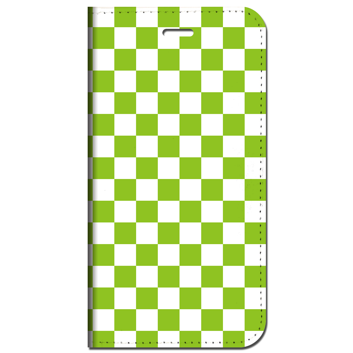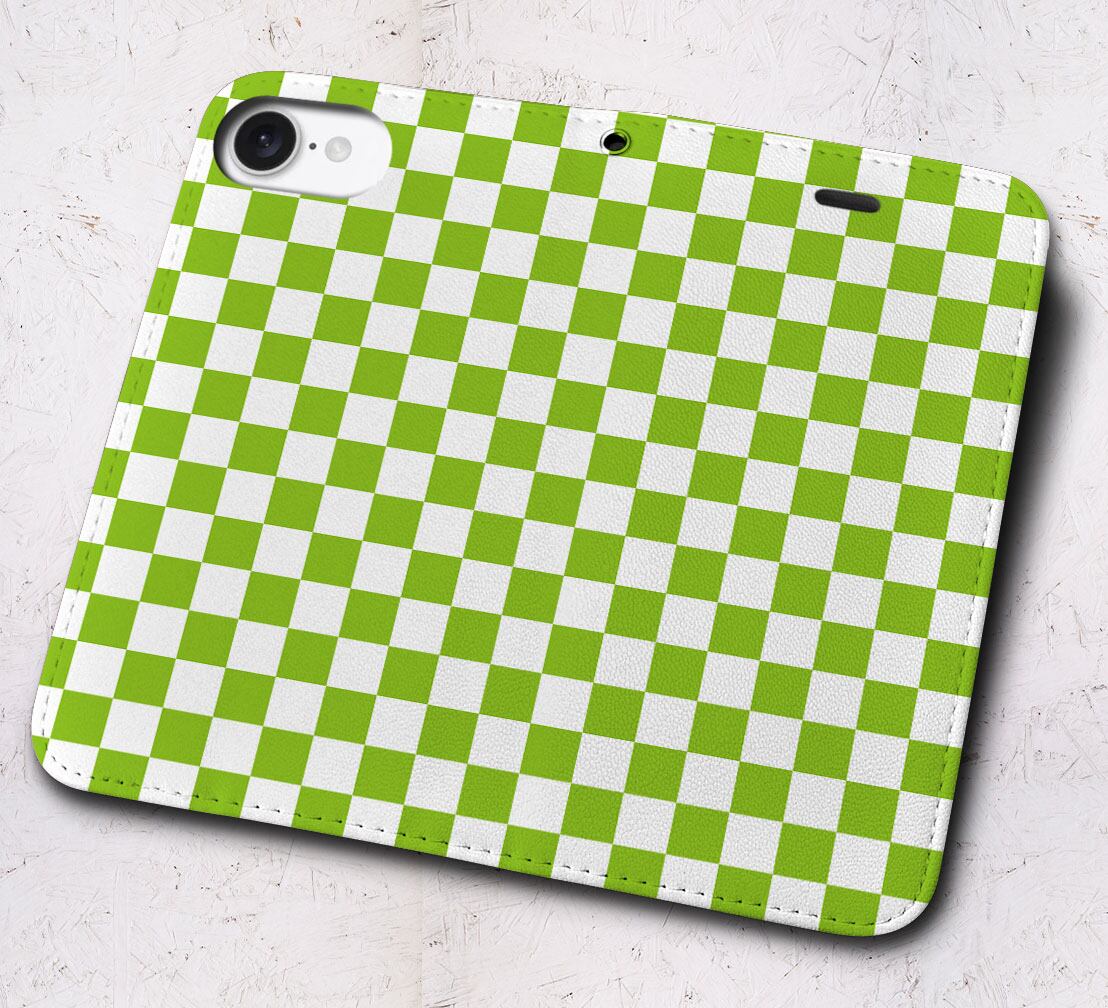iPhone対応 スマホ 手帳型ケース ランダムチェック(白)グリーン イラスト チェック ボーダー 格子 ライン 【iPhone17 / iPhone16 / iPhone16e / iPhoneSE 他 iPhone各機種対応】 st55