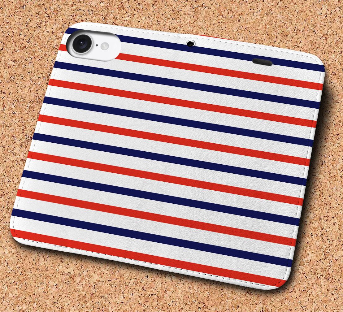 iPhone対応 スマホ 手帳型ケース ボーダー(白)レッド イラスト チェック ボーダー 格子 ライン 【iPhone17 / iPhone16 / iPhone16e / iPhoneSE 他 iPhone各機種対応】 st55
