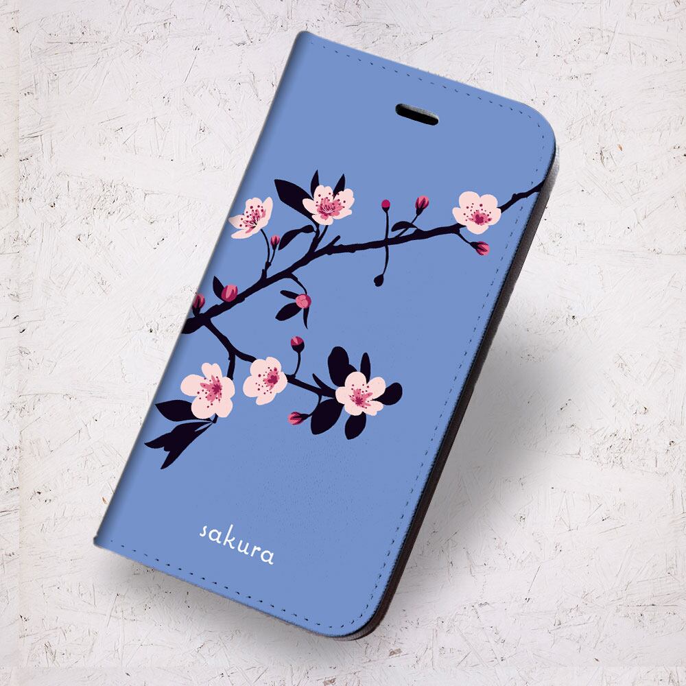 iPhone対応 スマホ 手帳型ケース サクラ ブルー イラスト 桜 フラワー 【iPhone17 / iPhone16 / iPhone16e / iPhoneSE 他 iPhone各機種対応】 st57