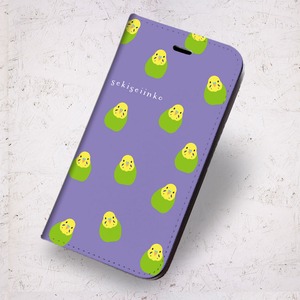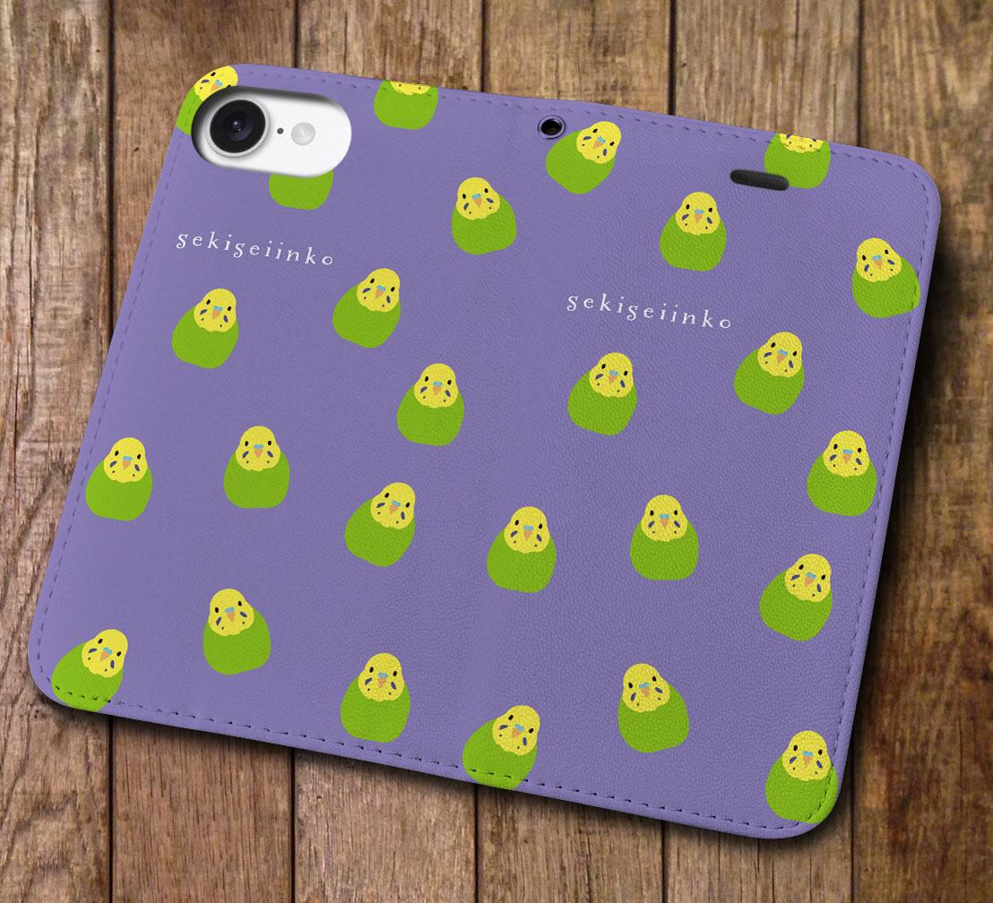 iPhone対応 スマホ 手帳型ケース インコ グリーン いっぱい イラスト 動物 鳥 いんこ デザイナーズ キュート 【iPhone17 / iPhone16 / iPhone16e / iPhoneSE 他 iPhone各機種対応】 st57