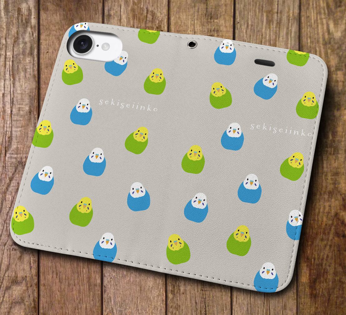 iPhone対応 スマホ 手帳型ケース インコ 青・緑 いっぱい イラスト 動物 鳥 いんこ デザイナーズ キュート 【iPhone17 / iPhone16 / iPhone16e / iPhoneSE 他 iPhone各機種対応】 st57