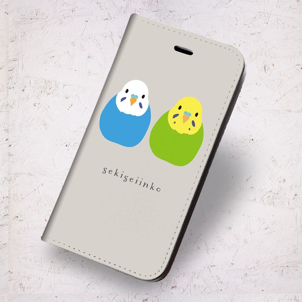 iPhone対応 スマホ 手帳型ケース インコ 青・緑 イラスト 動物 鳥 いんこ デザイナーズ キュート 【iPhone17 / iPhone16 / iPhone16e / iPhoneSE 他 iPhone各機種対応】 st57