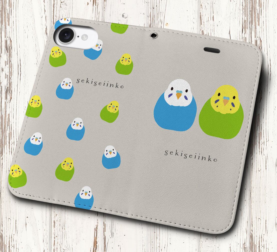 iPhone対応 スマホ 手帳型ケース インコ 青・緑 ミックス イラスト 動物 鳥 いんこ デザイナーズ キュート 【iPhone17 / iPhone16 / iPhone16e / iPhoneSE 他 iPhone各機種対応】 st57
