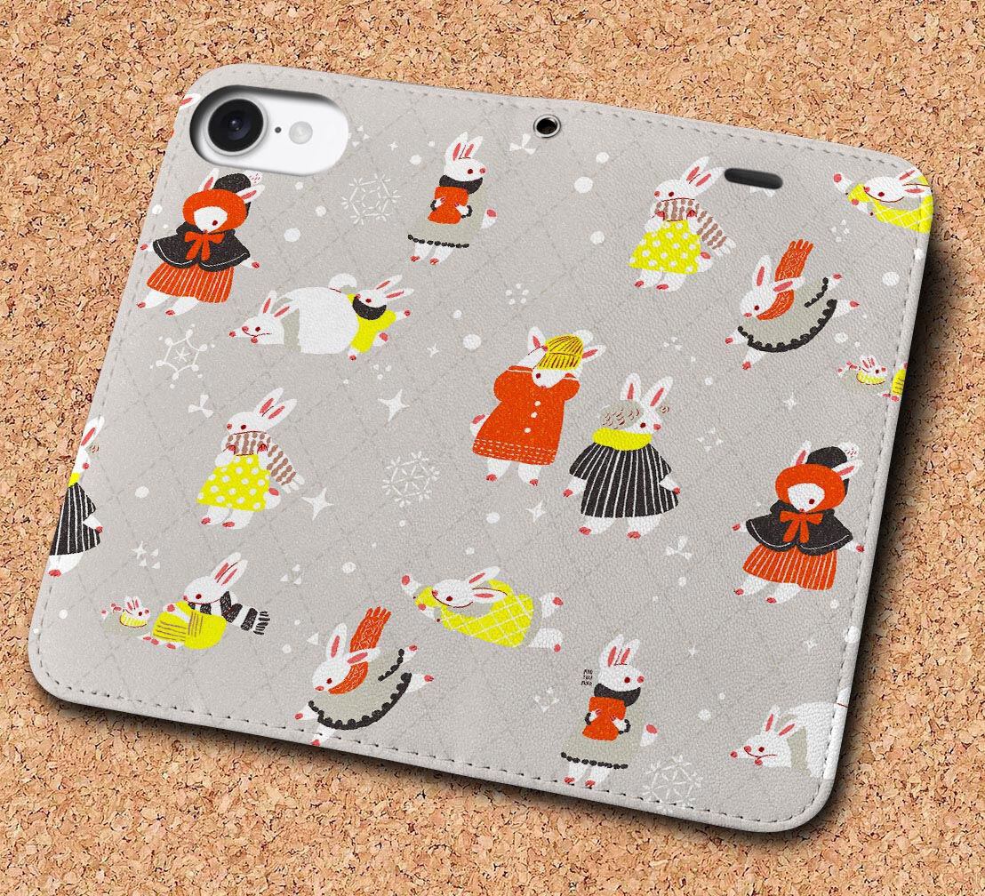 iPhone対応 スマホ 手帳型ケース 冬うさぎ02 イラスト 動物 キュート 【iPhone16 / iPhone16e / iPhoneSE 他 iPhone各機種対応】 st58