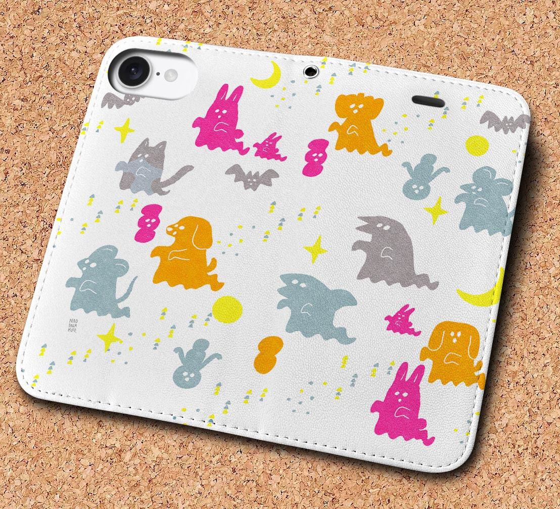 iPhone対応 スマホ 手帳型ケース おばけ イラスト キュート 【iPhone17 / iPhone16 / iPhone16e / iPhoneSE 他 iPhone各機種対応】 st58