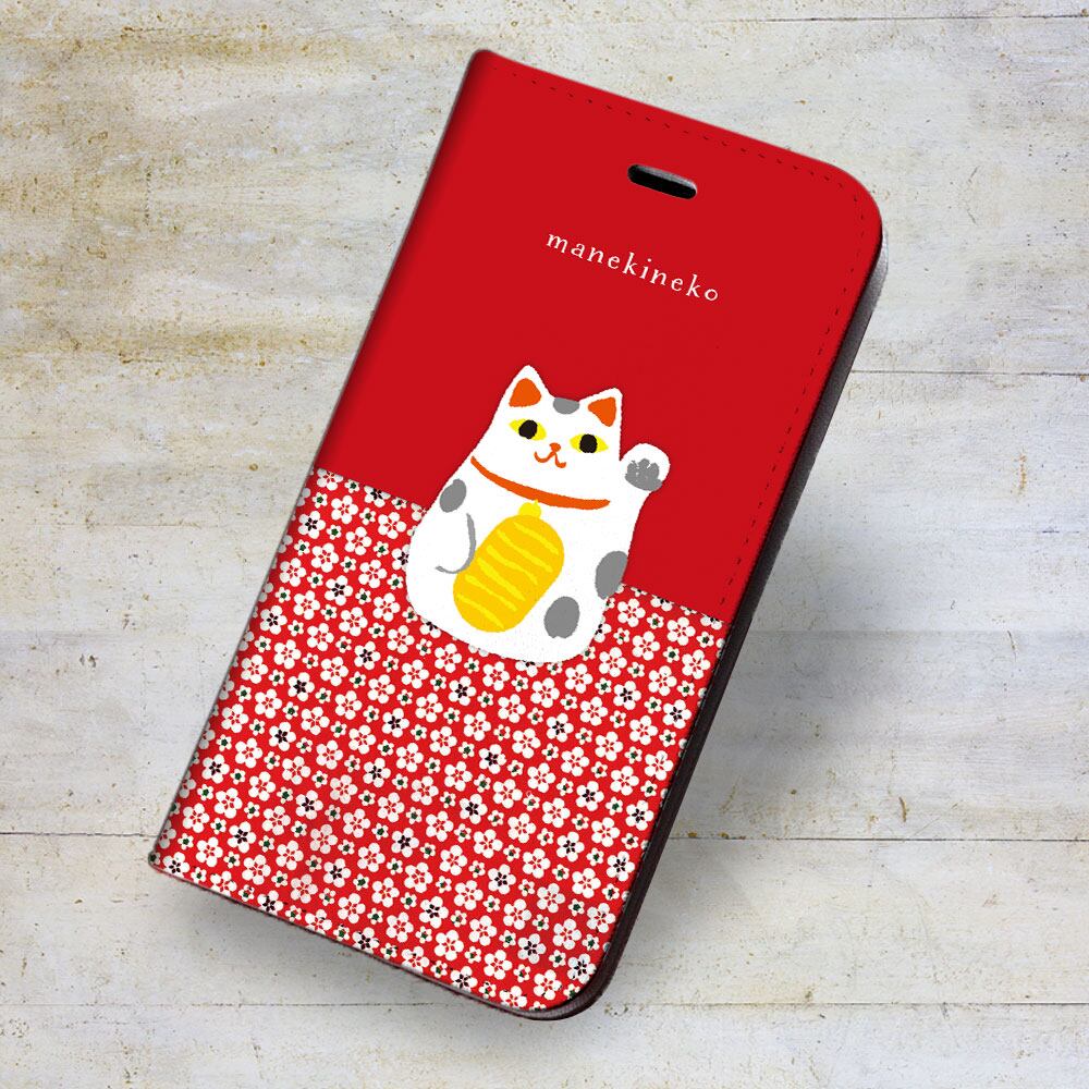 iPhone対応 スマホ 手帳型ケース 招き猫&招き猫いっぱい イラスト 日本 伝統 おみやげ 縁起物 【iPhone17 / iPhone16 / iPhone16e / iPhoneSE 他 iPhone各機種対応】 st60