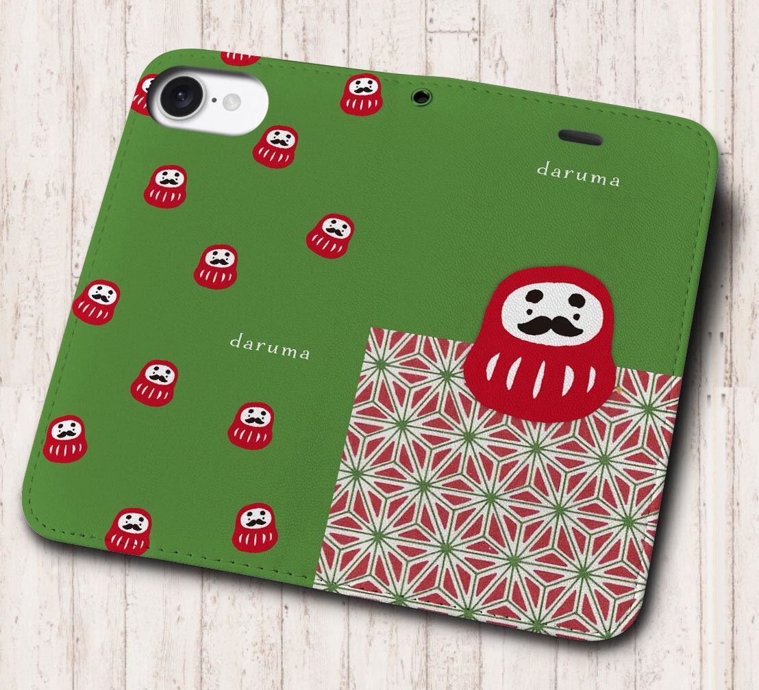 iPhone対応 スマホ 手帳型ケース だるま&だるまいっぱい イラスト 日本 伝統 おみやげ 縁起物 【iPhone17 / iPhone16 / iPhone16e / iPhoneSE 他 iPhone各機種対応】 st60