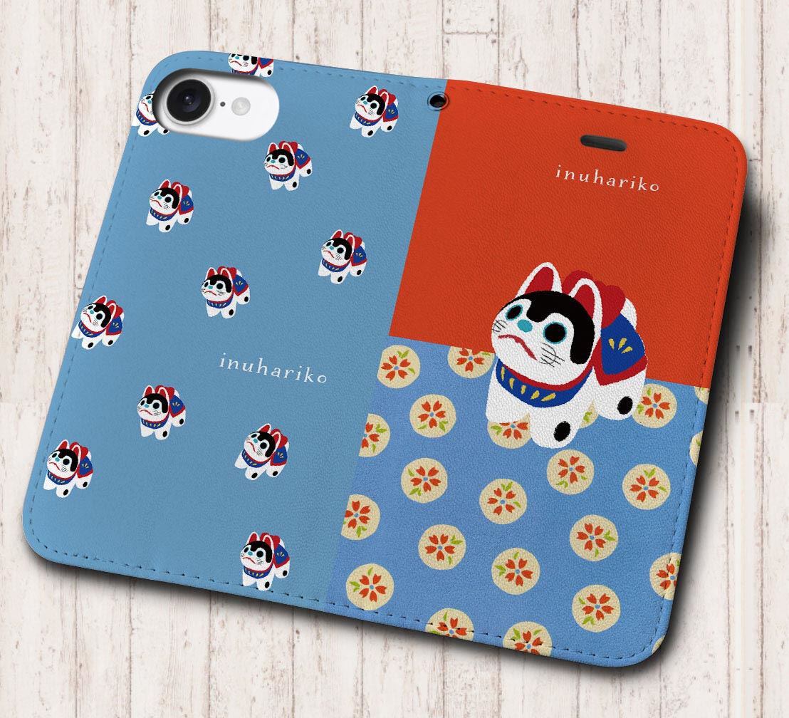 iPhone対応 スマホ 手帳型ケース 犬張子&犬張子いっぱい イラスト 日本 伝統 おみやげ 縁起物 【iPhone17 / iPhone16 / iPhone16e / iPhoneSE 他 iPhone各機種対応】 st60