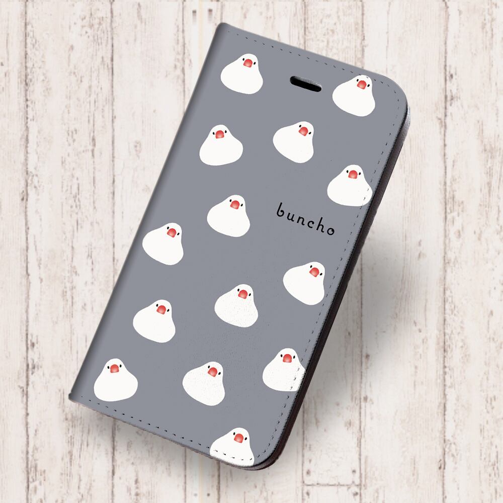iPhone対応 スマホ 手帳型ケース 白文鳥 いっぱい お餅グレー イラスト キュート 動物 鳥 【iPhone17 / iPhone16 / iPhone16e / iPhoneSE 他 iPhone各機種対応】 st62