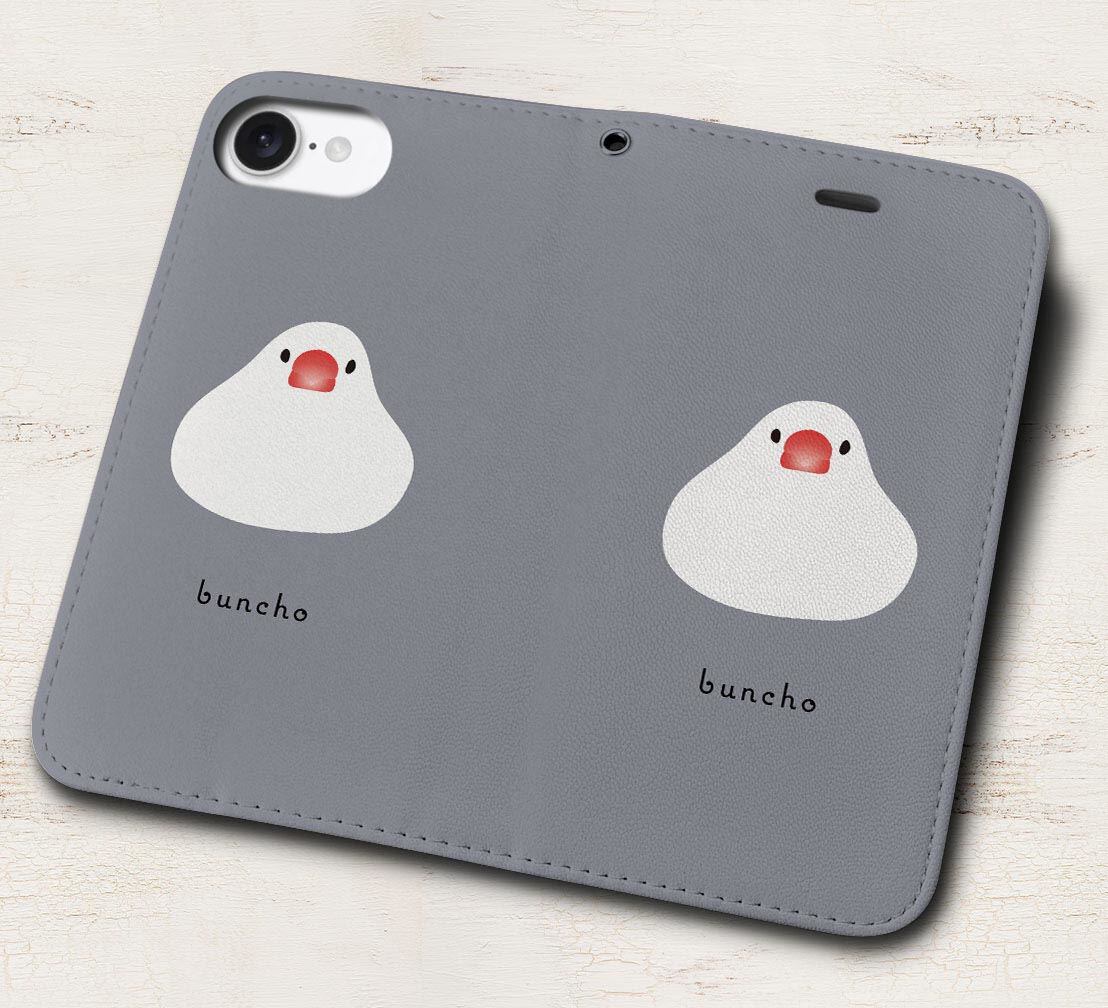 iPhone対応 スマホ 手帳型ケース 白文鳥 お餅ちゃん グレー イラスト キュート 動物 牛 【iPhone16 / iPhone16e / iPhoneSE 他 iPhone各機種対応】 st62