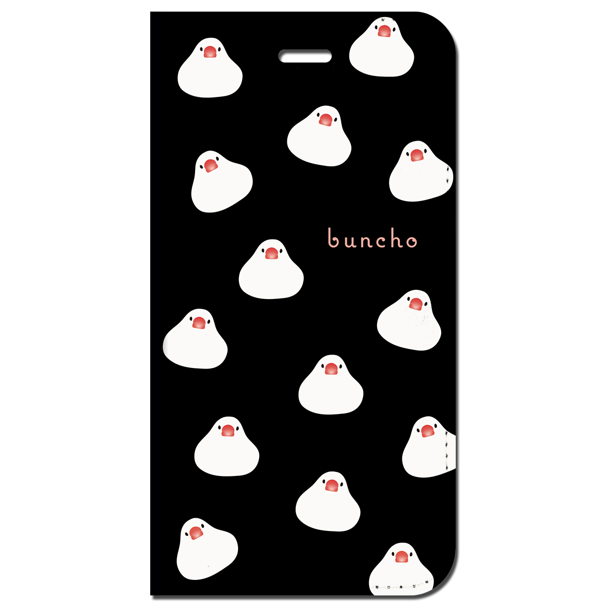 iPhone対応 スマホ 手帳型ケース 白文鳥 いっぱいお餅 ブラック イラスト キュート 動物 牛 【iPhone17 / iPhone16 / iPhone16e / iPhoneSE 他 iPhone各機種対応】 st62