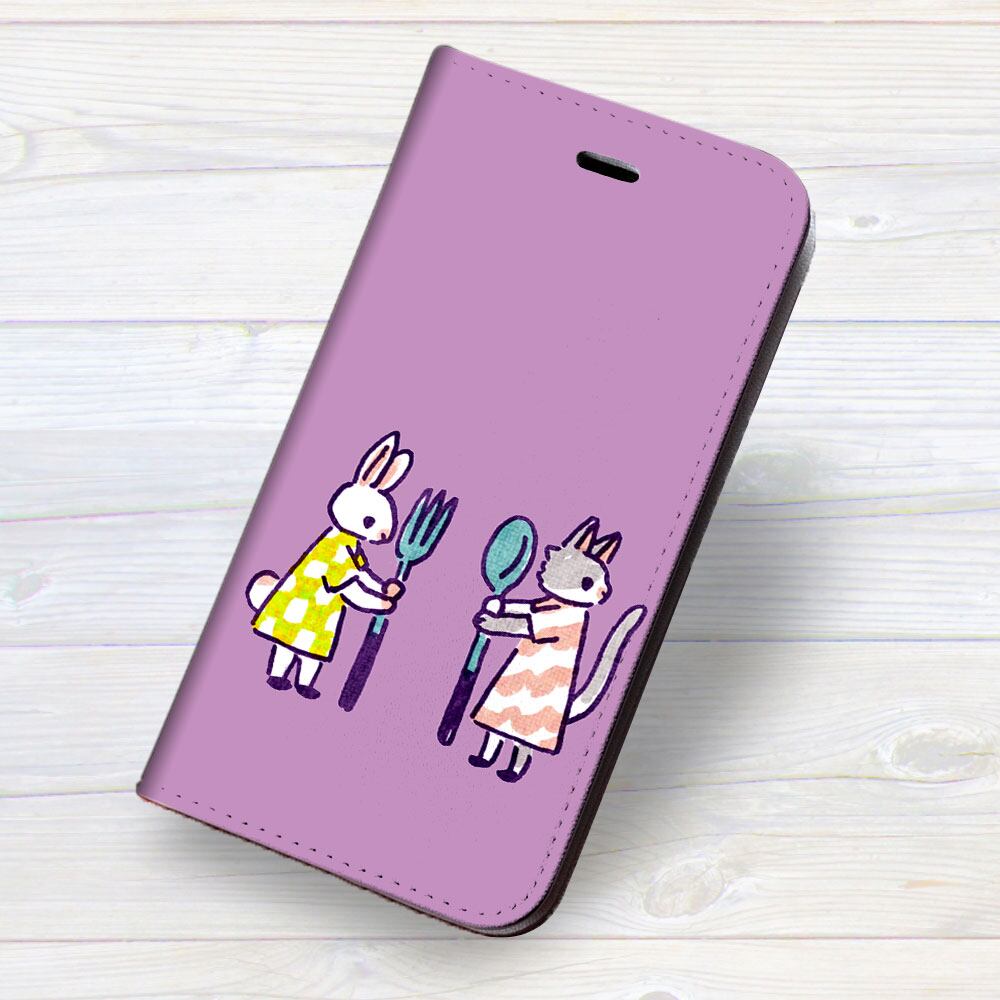 iPhone対応 スマホ 手帳型ケース うさぎ ネコ パープル イラスト キュート 動物 【iPhone16 / iPhone16e / iPhoneSE 他 iPhone各機種対応】 st63