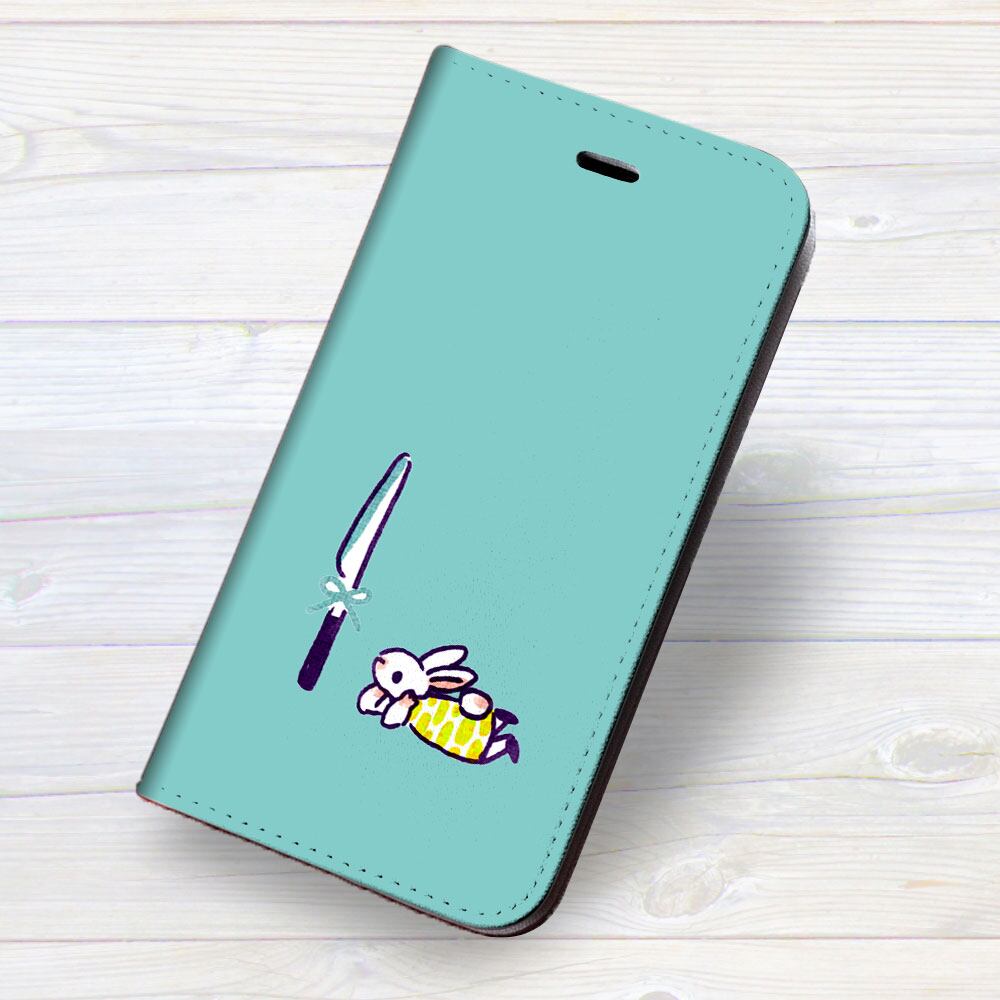 iPhone対応 スマホ 手帳型ケース うさぎ アクアブルー イラスト キュート 動物 【iPhone16 / iPhone16e / iPhoneSE 他 iPhone各機種対応】 st63