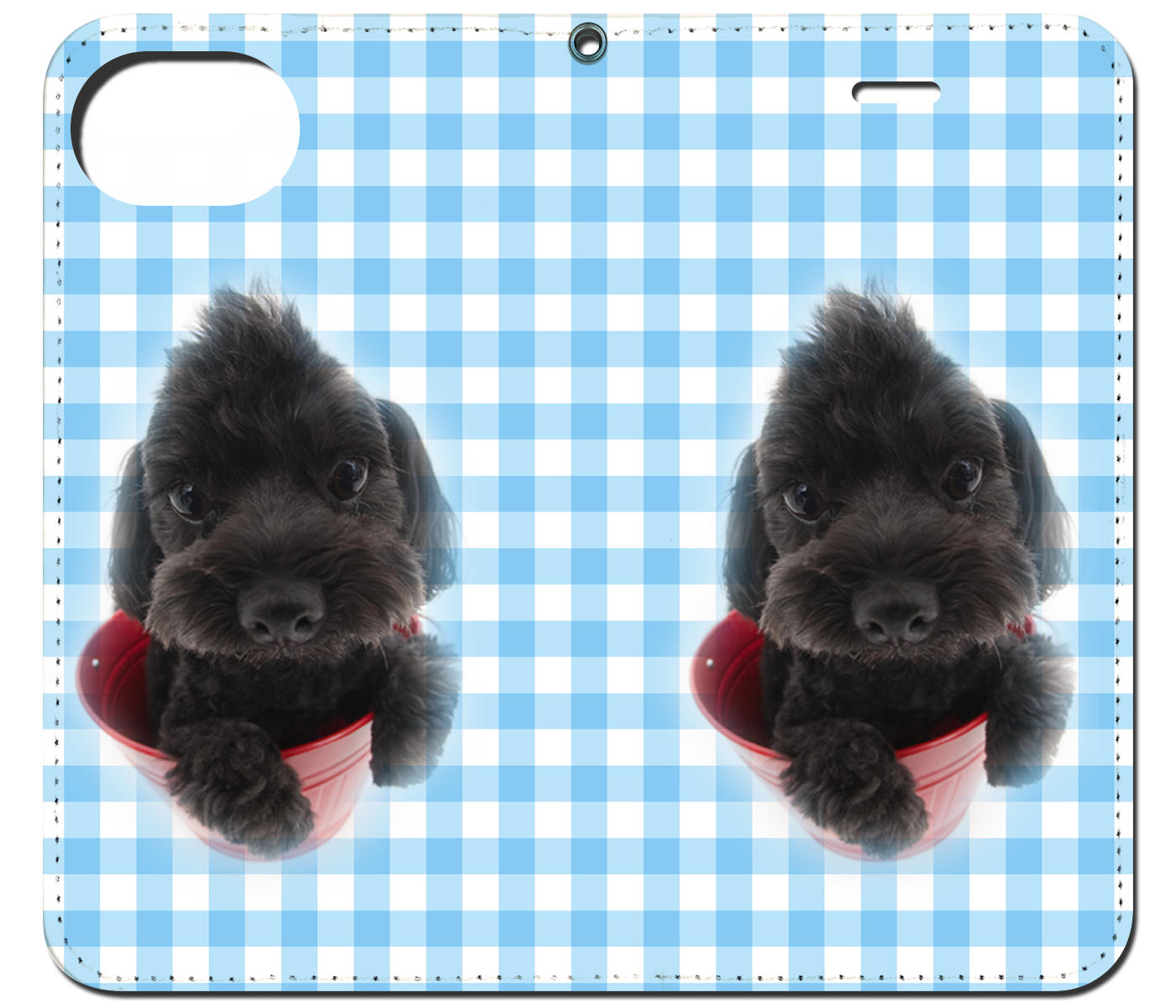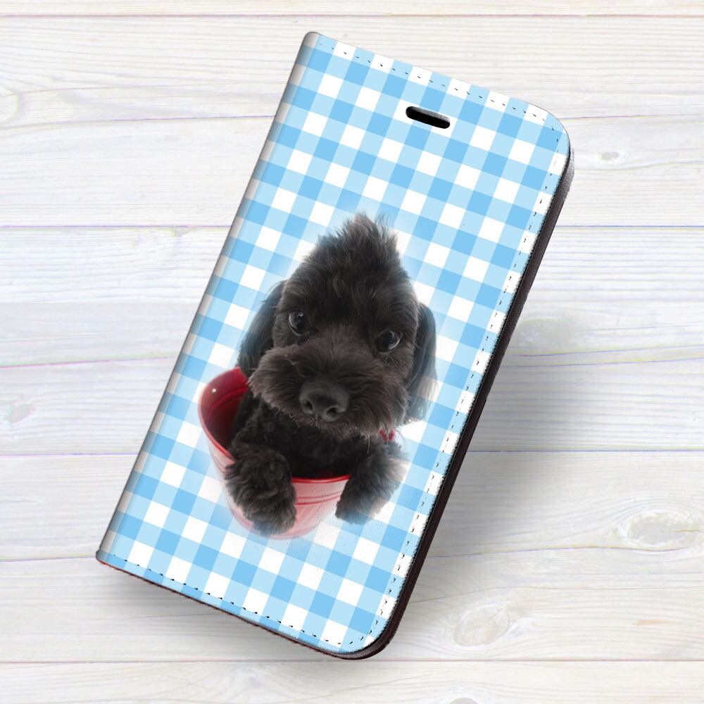 iPhone対応 スマホ 手帳型ケース トイプードル03 チェック柄ブルー 動物 ペット犬 イヌ 【iPhone17 / iPhone16 / iPhone16e / iPhoneSE 他 iPhone各機種対応】 st65