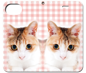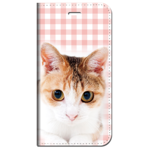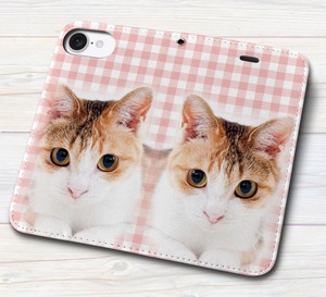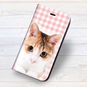 iPhone対応 スマホ 手帳型ケース 三毛猫 チェック桃色 動物 ペット猫 ねこ 【iPhone17 / iPhone16 / iPhone16e / iPhoneSE 他 iPhone各機種対応】 st65
