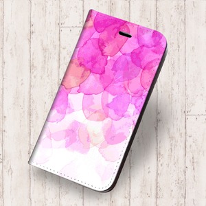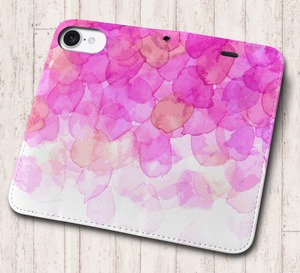 iPhone対応 スマホ 手帳型ケース 水彩03-ピンク イラスト 花 自然 フラワー 絵画 アート 【iPhone17 / iPhone16 / iPhone16e / iPhoneSE 他 iPhone各機種対応】 st69