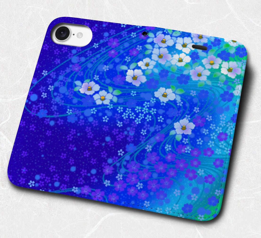 iPhone対応 スマホ 手帳型ケース 流水花椿 和柄 おしゃれ 日本 伝統 【iPhone17 / iPhone16 / iPhone16e / iPhoneSE 他 iPhone各機種対応】 st13