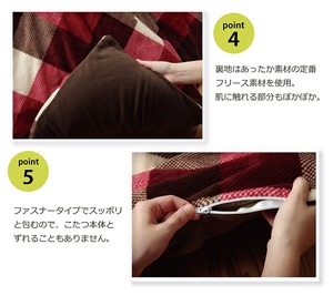 こたつ布団で人気のチェック柄をカバーにしました。表地にははっ水機能を施しています。ファスナー付きコタツ掛けカバーです。洗濯機で洗えるので清潔にご使用できます。