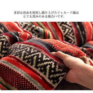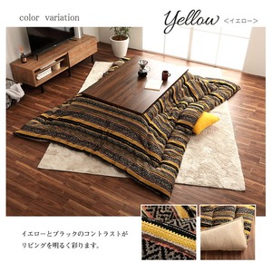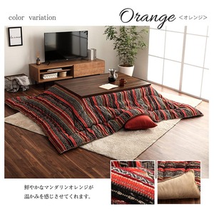 ストライプ調の中に幾何柄をデザインし、派手さと深みのあるこたつ布団。