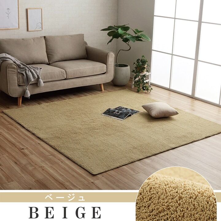 お部屋に合わせて選べる4サイズ6色展開です。2色ミックスのパイルでやさしいナチュラルカラーラグです。裏面にはフローリングの上でもご使用できるよう、滑りにくい加工を施しております。ホットカーペット・床暖房にも対応しているため、オールシーズンお使いいただけます。ネット使用時、ご家庭の洗濯機で洗えるため清潔にご使用頂けます。