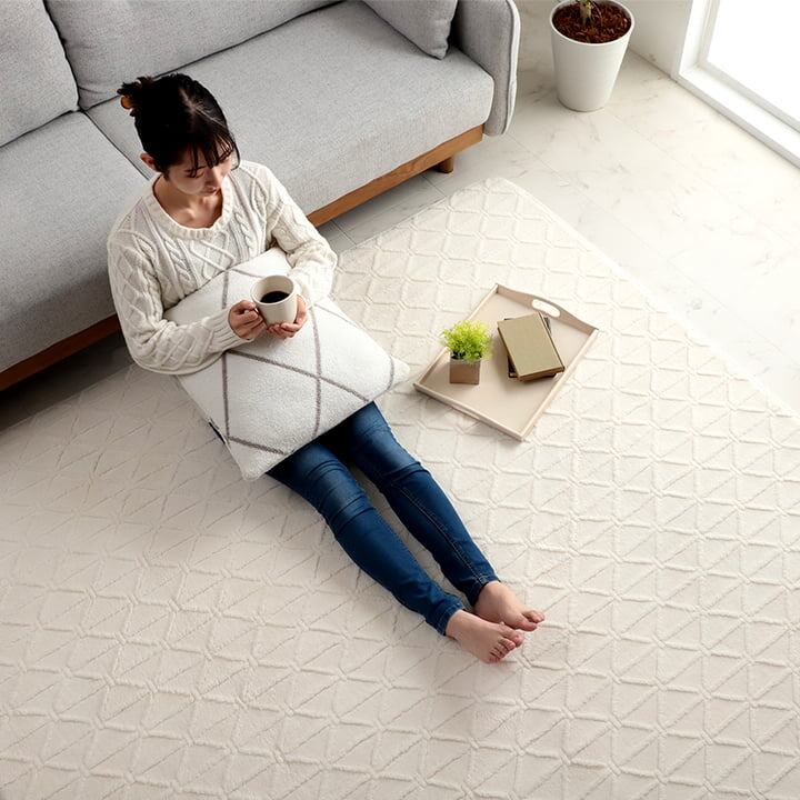 ジャガード織で幾何柄を表現した、おしゃれなラグです。