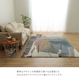 斬新なデザインが特徴的で様々なお部屋にも合わせやすいアブストラクト柄のウィルトンラグ。