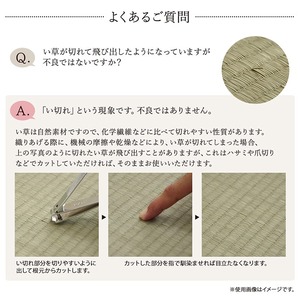 フルーツ柄のかわいらしい、い草のキッチンマットです。キッチンマットの不満を解消してくれる商品です。化繊もののキッチンマットと比べ、汚れにくくシミになりにくいです。小さなゴミでも、ほうきで掃く、掃除機をかけるだけで取り除くことができます。燃えにくい性質の素材のため火を使うキッチンでも安心してご使用いただけます。い草自体が持つ油分により汚れを弾くので洗う必要がなく長くご使用いただけます。裏地には国産のウレタンフォームを使用することで、丈夫でクッション性があり滑りにくくしました。キッチンに限らず様々な場所・シーンでお使いいただけます。