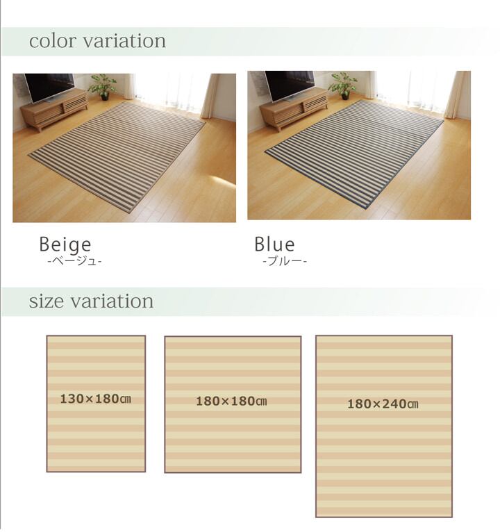 マリンテイストのバンブーラグです。竹の素材感を残しながら、カラー糸によりデザインを表現しています。さらっとした足触りと裏面に不織布を使用しているため底付き感を軽減してくれます。フローリングにもぴったりの商品です。竹は耐久性に優れ、熱伝導率が高いため自然のひんやり感があります。