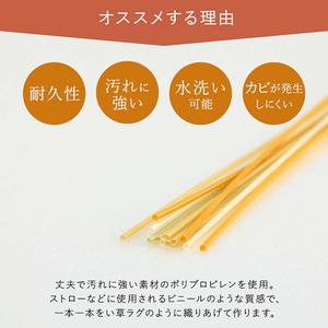 細いストロー状のような素材を細いパイプ状にして織り込んだ敷物です。