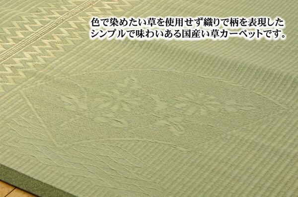 織りで柄を出した、ベーシックな無地花莚です。国産(九州産)のい草を使用しています。一本一本が太く、表皮が厚く繊維がキメ細かいので弾力性があり、耐久性に優れています。い草には空気の自然浄化作用、湿度の調節作用などがあります。また汚れにくく、使用するうちに黄金色に変化し味が出ます。い草に青森ヒバ加工を施しています。(抗菌、防臭効果)