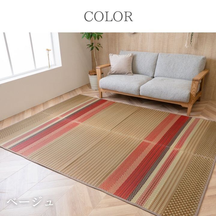 い草の中でも特に高品質な長いい草を使用し、しっかりと織り上げることで、耐久性もグンとアップしたつくりになっています。裏面には滑りにくい加工を施しているので、ずれにくくて安心です。制菌、抗菌防臭、消臭効果があります。