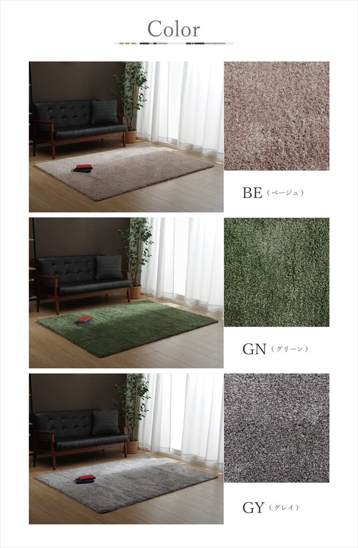 ラグ カーペット 3畳 無地 シャギー調 手洗い可 滑り止め付き 選べる3色 ス約190×240cm